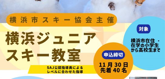 横浜市民スキー教室への参加申し込み締め切り日を、現在12月8日(日)にしておりま・・・