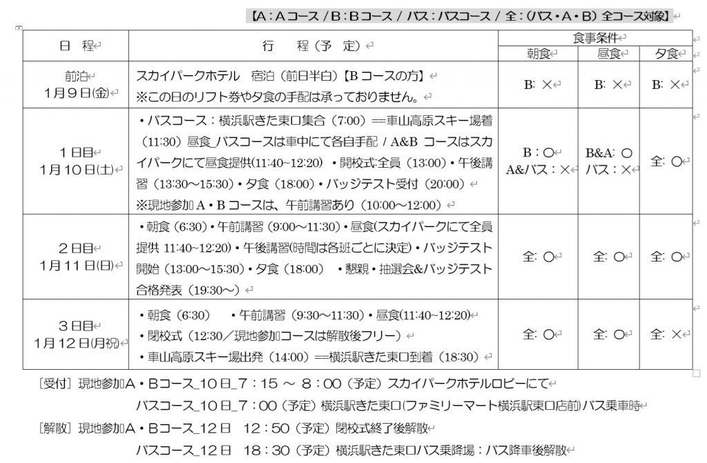 ※詳細情報は”横浜市民スキー教室 募集要項”を参照願います。